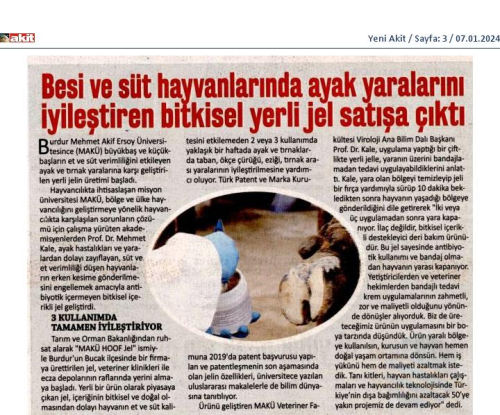 Besi ve Süt Hayvanlarında Ayak Yaralarını İyileştiren Bitkisel Yerli Jel Satışa Çıktı