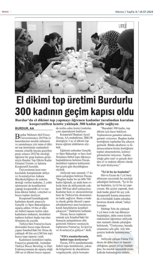 El Dikimi Top Üretimi Burdurlu 300 Kadının Geçim Kapısı Oldu