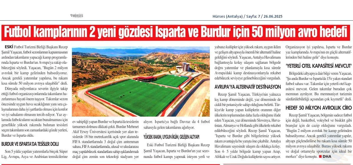 Futbol kamplarının 2 yeni gözdesi Isparta ve Burdur için 50 milyon Avro hedefi